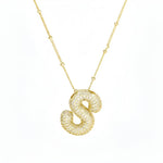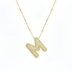 Elegant initial necklace with a balloon-shaped letter pendant made of gold-plated metal, fully encrusted with sparkling stones. The striking 3D look makes the necklace a personal statement piece—perfect for wearing your own initial or that of a special person close to your heart. Ideal for everyday wear, dates, or parties, and also makes an excellent personalized gift. To keep the gold plating radiant for a long time, please remove the necklace when showering, bathing, exercising, and before applying perfume or lotion, and occasionally gently clean with a soft cloth. For long-lasting enjoyment, please remove when showering, bathing, or exercising.