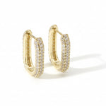 Elegant gold-plated hoop earrings with an oval silhouette in a modern European style for women. The high-quality copper earrings are set with sparkling zirconia and impress with their timeless design. Ideal for parties, weddings, engagements, or everyday wear. Durable gold plating ensures a shiny finish and long-lasting wear. These hoops make a stylish statement and complement any outfit perfectly. Also suitable as an exclusive gift. For long-lasting enjoyment, please remove when showering, bathing, or exercising.